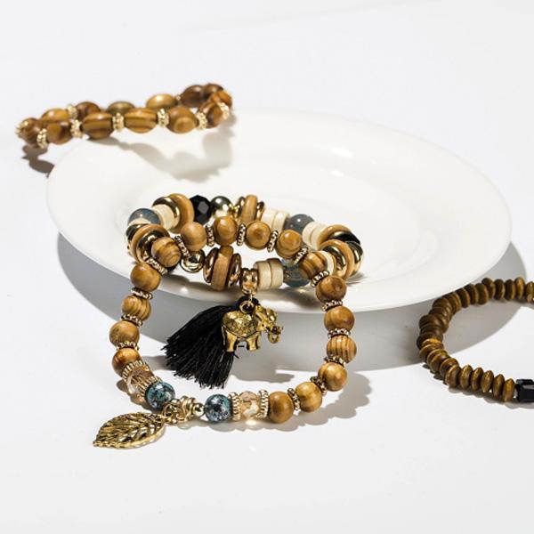 Express your boho chic style with the Elephant Wooden Beads Bracelet! Wear them as a set of 4 when you're feeling extra hippie, or mix and match however you like!