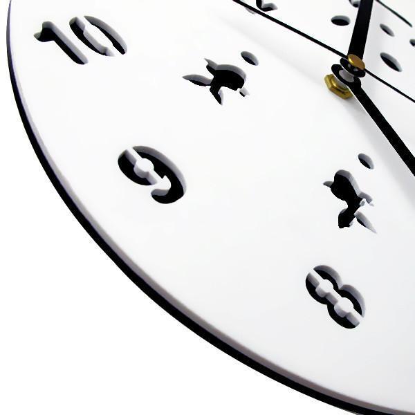 Your kitty might have to keep its paws to itself but this Fishbowl Cat Clock will allow the cat to swipe at the fishes perpetually for eternity. Clock face features fishes and bubbles, along with hour, minute and second hands. Hang this lovely clock up on the wall or prop it against the shelves. Decorative clock's black and white silhouette design is perfect for cat lovers and complements any décor.