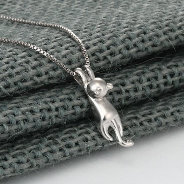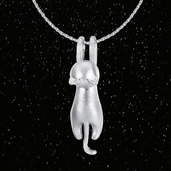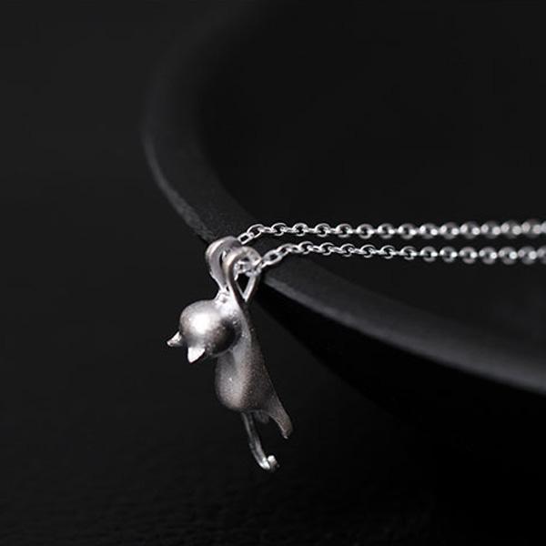 Hanging Cat 925 Silver Necklace