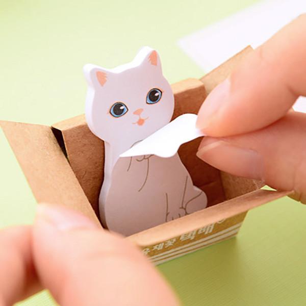 - Kitty In A Box Sticky Notepads feature 5 different cats in their favorite boxes.