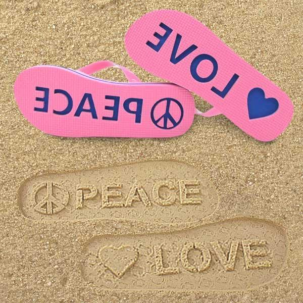 Flip-flops are everywhere. But those that leave lasting footprints? Not many. Love Peace Imprint Slippers leave behind an imprint of text "Peace" and "Love" with their respective symbols in the sand as you sashay down the beach.