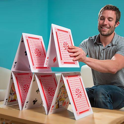 The amusingly oversized cards are four times bigger than your regular playing cards! Have fun stacking up them up as pyramids or use them to increase the level of difficulty when playing a game of Go Fish!