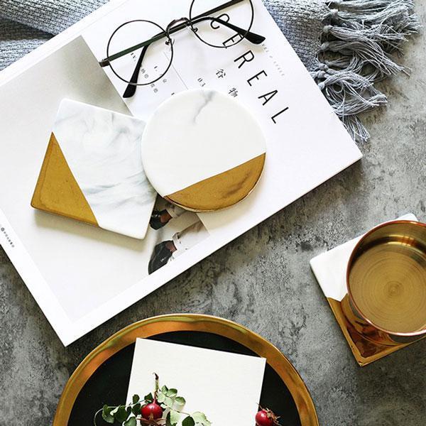 Gold Plated Marbling Coasters (Various Designs)