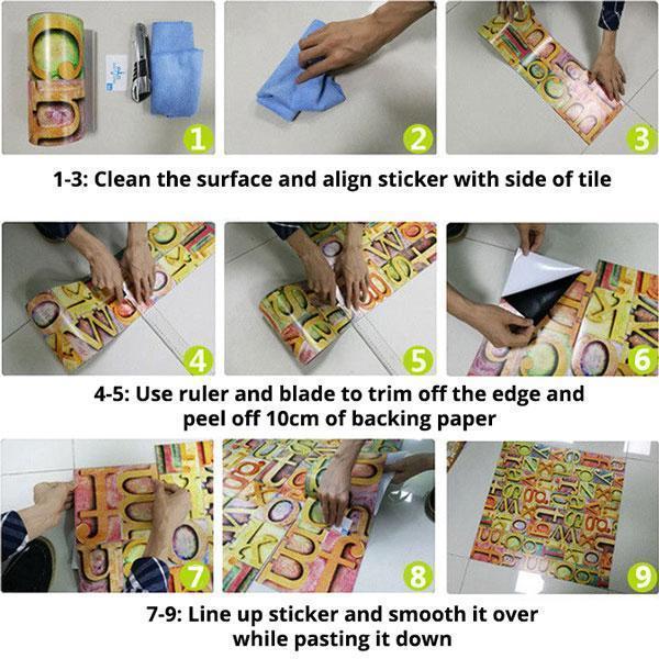 - Apply them onto cupboards, wall, floor, or just about anywhere which needs sprucing up!