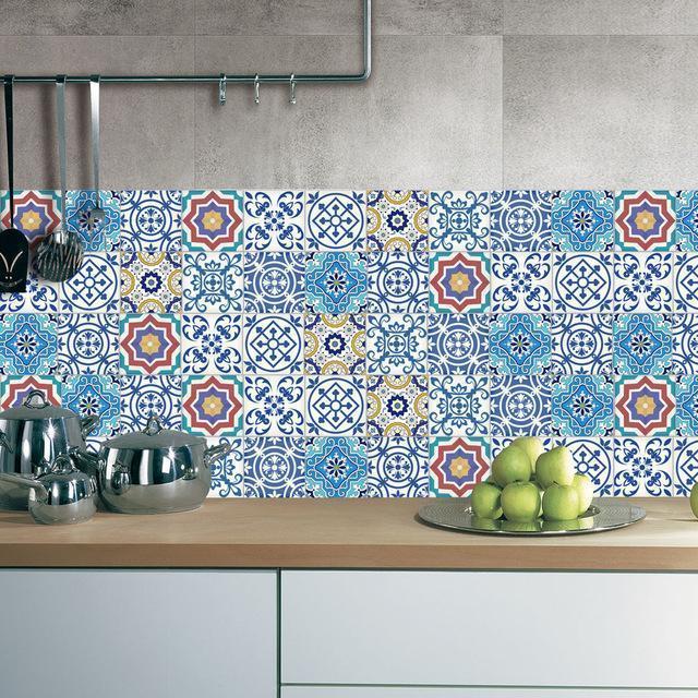 Highly stylized wall decals are all you need to give any tiled surface a whole new look! Whether you use these Mediterranean Waterproof Wall Floor Tile Stickers in a bathroom or a kitchen, create the illusion of a bath or kitchen remodel in minutes without breaking your bank account!