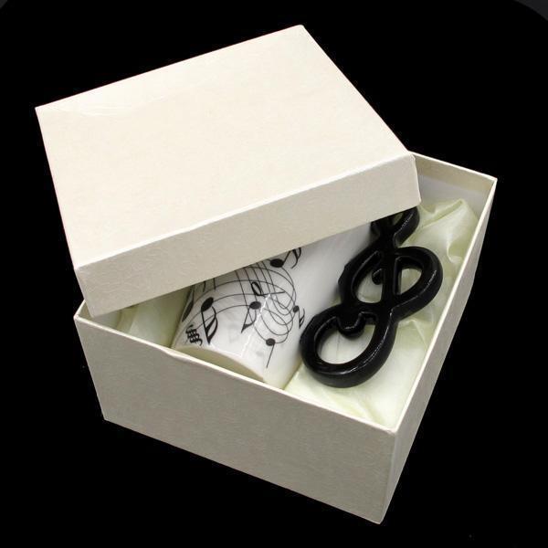 This mug is painted by hand with musical notes adorning the mug and decorated with a beautiful Treble Maker as handle. The Musical Note Mug makes a great gift for musicians and music lovers alike!