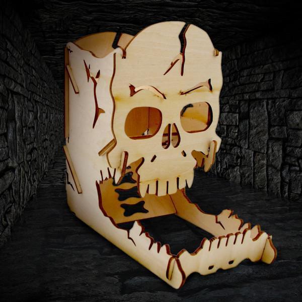 Everyone knows the game will be serious when the Skull Dice Tower is used! Terrorize your fellow gamers with the dice tower and watch their hands shake in fear. With some luck, the dice will roll out in your favor!