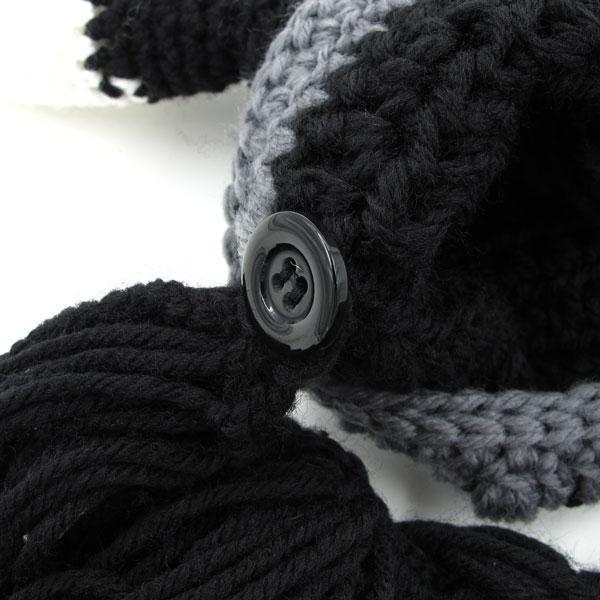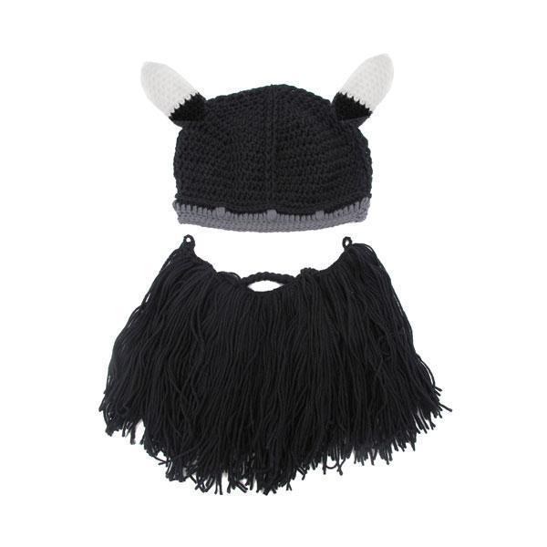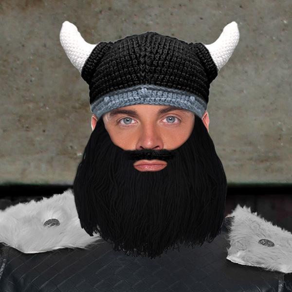 • Knitted Viking Beard Beanie with pointed horns and black beard